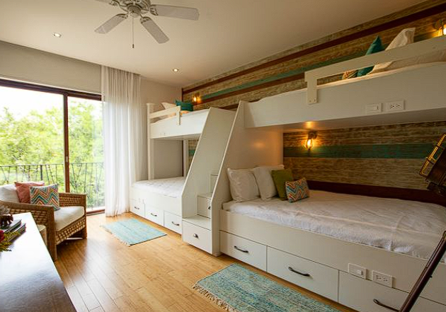 It counts with some amazing furnished balconies off of each bedroom. Here guests have plenty of space to unwind and relax. There are two King size master bedrooms and one bunk bedroom with 4 individual size beds. All three of the bedrooms, have private and spacious attached bathrooms. This is an amazing property that Pexs has to offer, and, without doubts, one of the best. This is a truly beautiful luxury villa in Costa Rica.